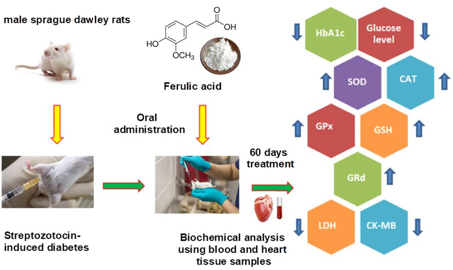 Keywords: ferulic acid, streptozotocin, diabetes, cardiac damage, oxidative stress