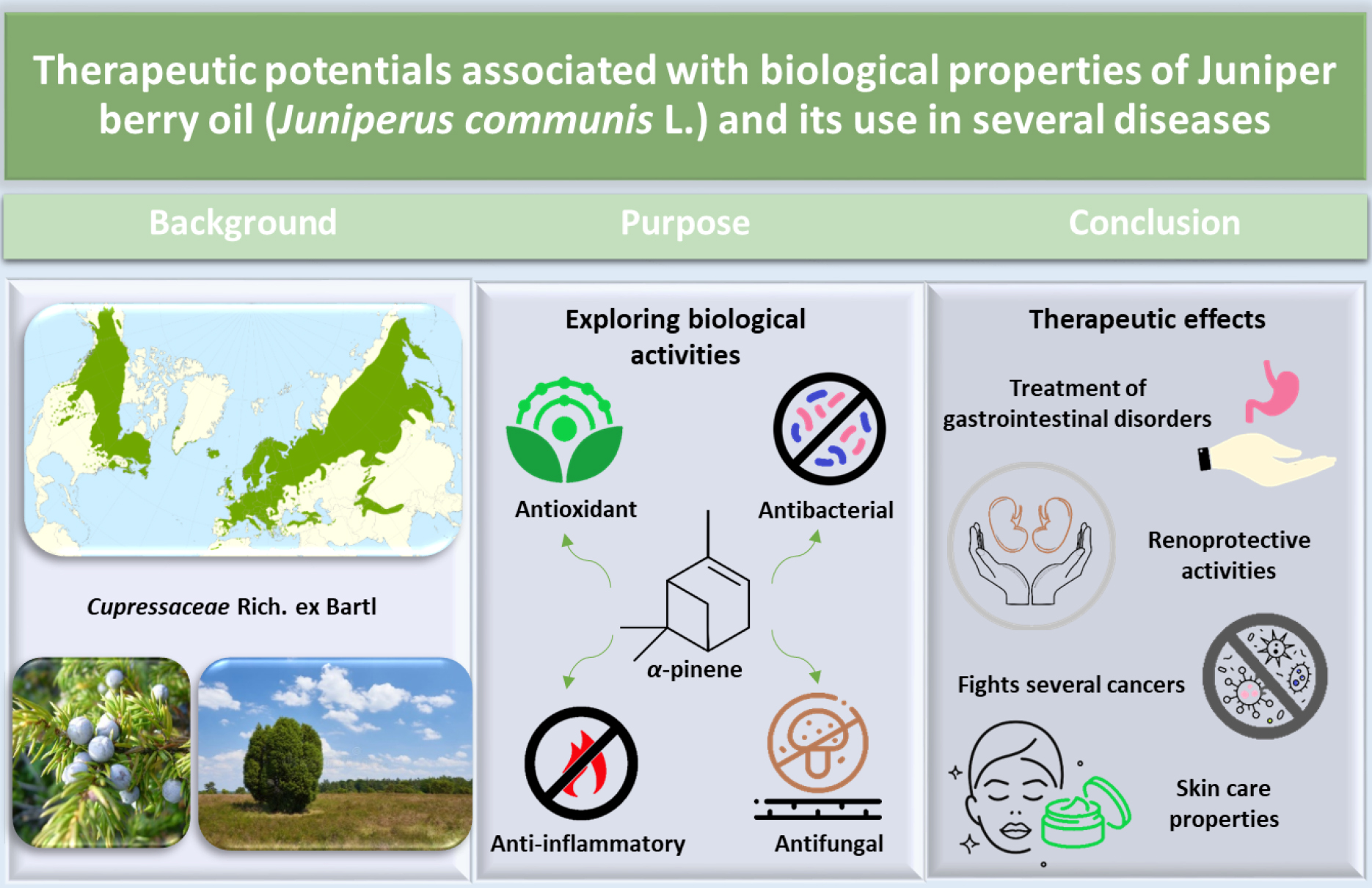 Therapeutic potentials associated with biological properties of Juniper berry oil (Juniperus communis L.) and its therapeutic use in several diseases – A Review